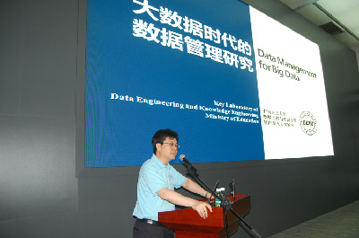 实验室有幸邀请到了中国人民大学信息学院院长、教育部数据工程与知识工程重点实验室主任杜小勇教授担任会议主讲嘉宾。杜小勇教授以“大数据时代的数据管理研究”为题,深入分析数据管理的发展趋势,重点介绍相关的研究课题,探讨大数据时代给数据管理研究者带来的新机会。