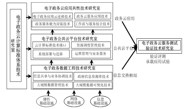实验室将以建成国内一流、国际领先,面向服务、面向企业、以为民服务为导向、开放的电子政务云计算技术研发、实验、人才培养、技术产业化实验室为目标,重点完成以下五个方面的主要任务: